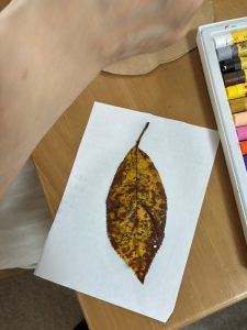 秋の葉っぱを 紙の上からこすり、 こすり絵を作りました。🍂色々な秋色を選んでくださいました。🎨