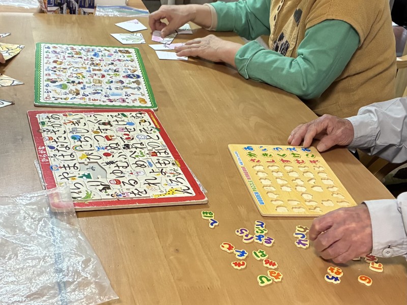 パズル対決 🧩 Author 上安スタッフ Date 2025年11月3日 色々な 五十音のパズルを使って対決です。 さてどなたが1番早く完成されるでしょうか。「頑張って❕」応援を担当して下さるかたもいらっしゃいます。
