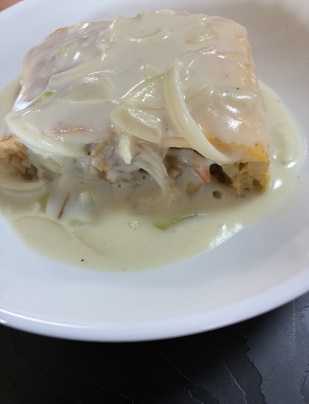 牛肉とじゃがいものオムレツ(クリームソースかけ)