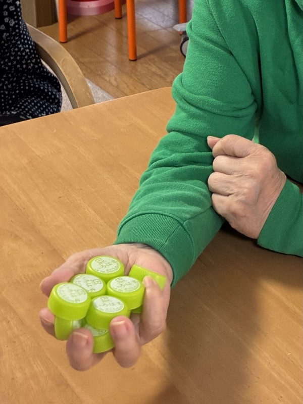 大きく手を広げて、キャップを握って下さい。何個握れるでしょうか。。