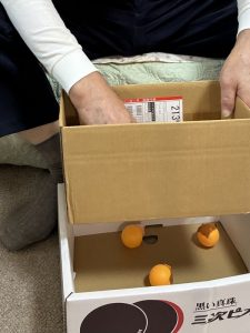 ダンボールの中の穴から、ピン球を落としてください。揺らして揺らして〜😊😊