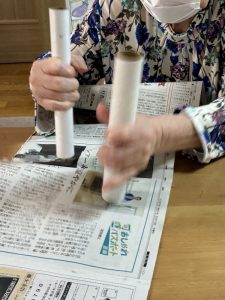 ラップの棒二本使って 新聞を早く引き寄せて下さい。💦「カツカツ」急いだ良い音が聞こえて来ます。😊😊
