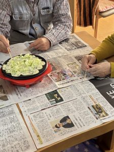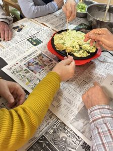 たこ焼き ではなく ネギ焼き を作りました。「まだかね。」「それ もういいんじゃない?」皆様で和気あいあい 出来立てネギ焼きを頂きました❣️