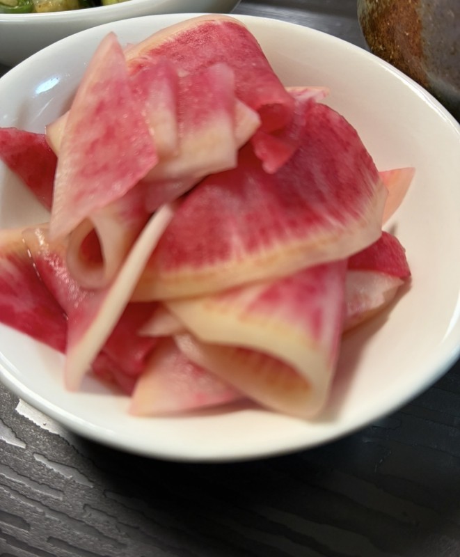 外側は 白なのに、中はピンク🩷 酢の物にすると 更に鮮やかな色になりました。🩷