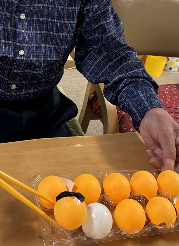 広島デイサービスほうじゃね上安スタッフブログ たこ焼き?ゲーム Author 上安スタッフ Date 2025年9月30日 ピン球の裏に 焼き色を貼って、たこ焼き❔ゲームに参加下さいました。 お箸が滑って上手く返せず、周りの方も 応援